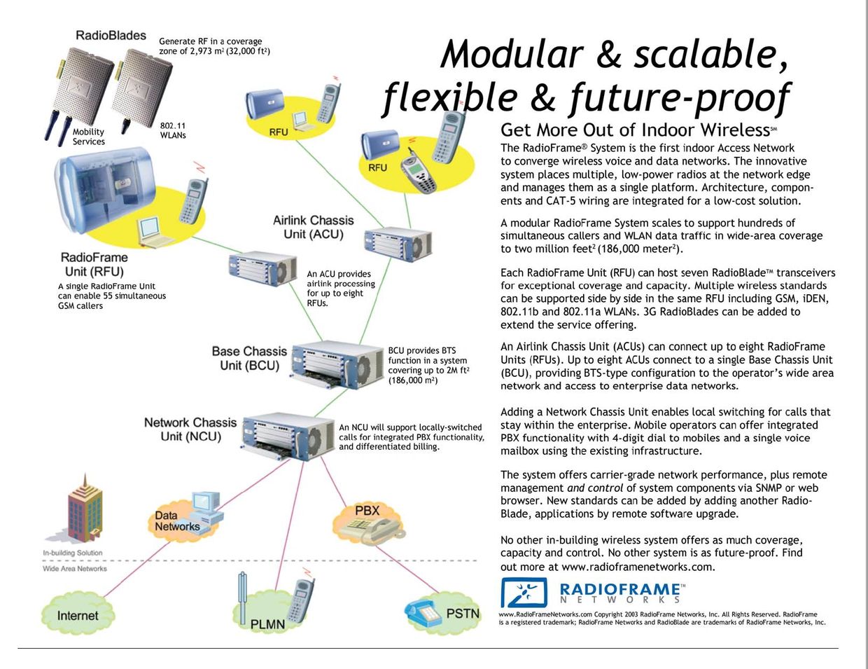 Typical outdoor cellular towers have difficulty providing coverage in today's modern buildings. Running multiple networks for different cellular providers and WiFi take up valuable space. So a combined network solution is elegant and desirable.